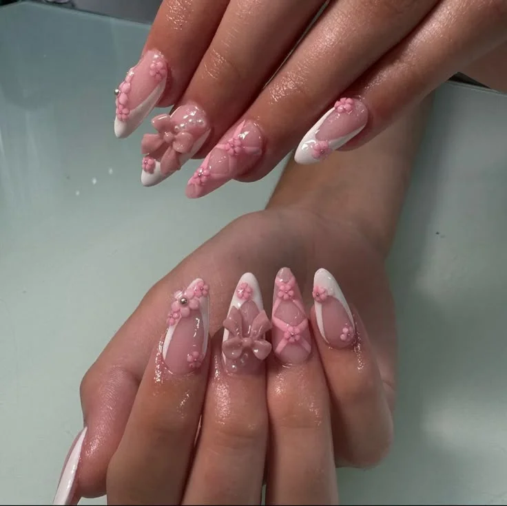 Give your Easter nails a fun twist with bow designs in different shades on each hand.