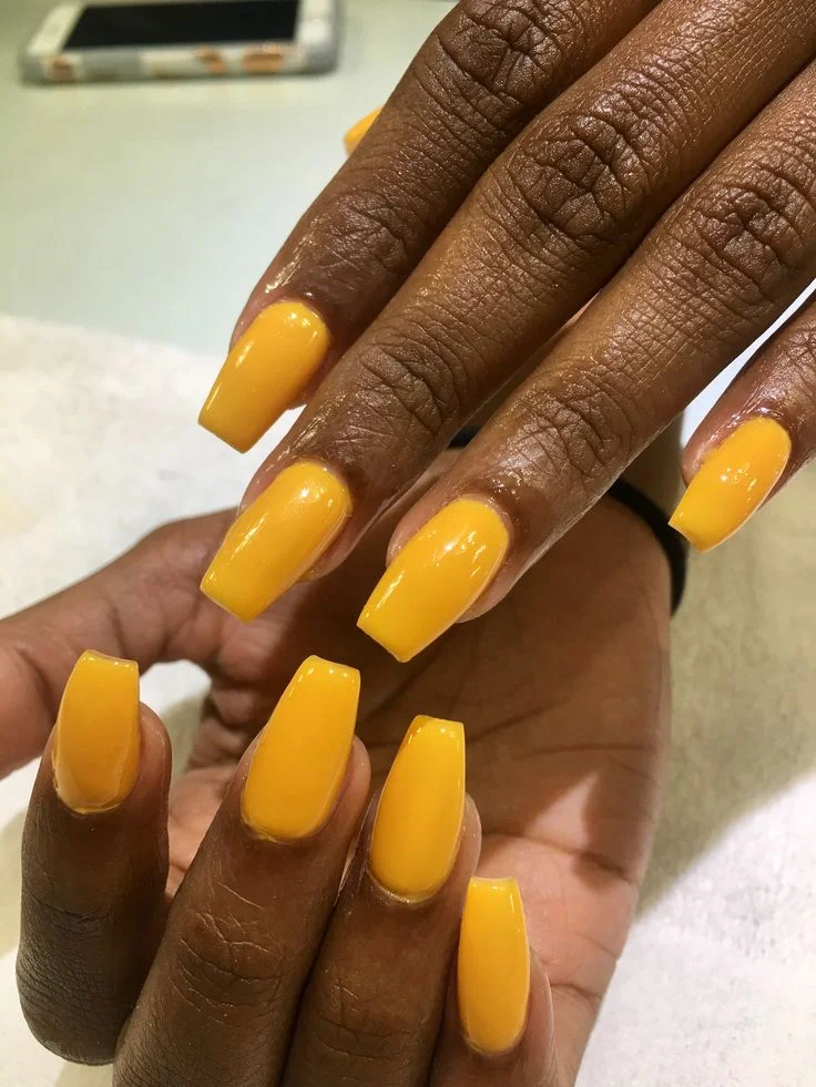 For the best fall nail colors, you can’t go wrong with a pop of color from yellow mustard nails. They look good enough to eat!