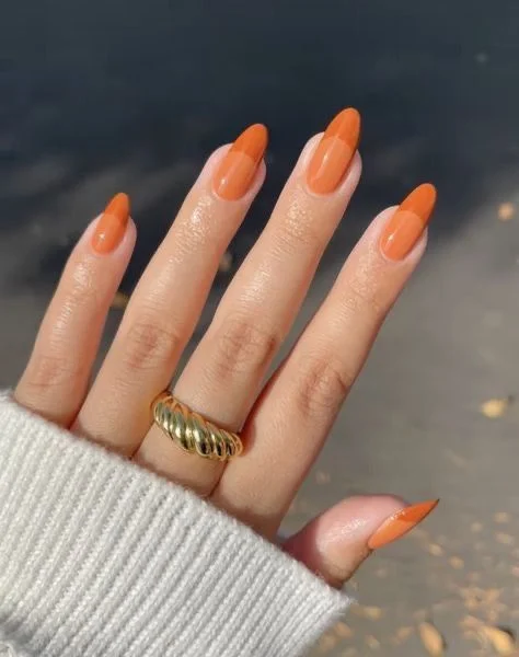 Starting off with a classic burnt orange for your fall nails is like wrapping your fingertips in the essence of autumn.
