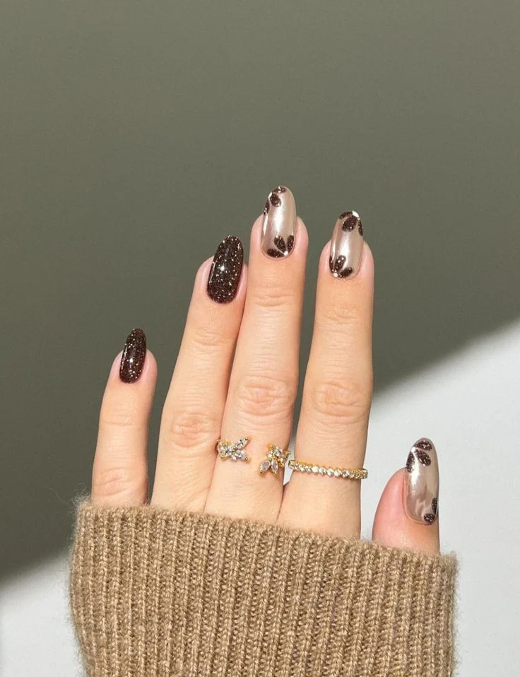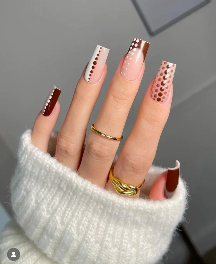 Dotted nails are fun and stylish, and they look good on every nail shape, making them a great choice for anyone wanting to try something different this fall.