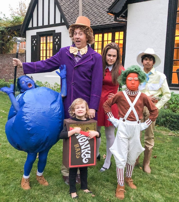 One person as Wonka, kids as Oompa Loompas, and maybe a Violet turning into a blueberry.