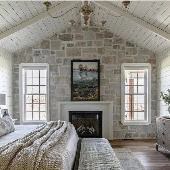 If your farmhouse bedroom has enough space, consider adding a fireplace to enhance its cozy ambiance, especially if you live in a colder climate.
