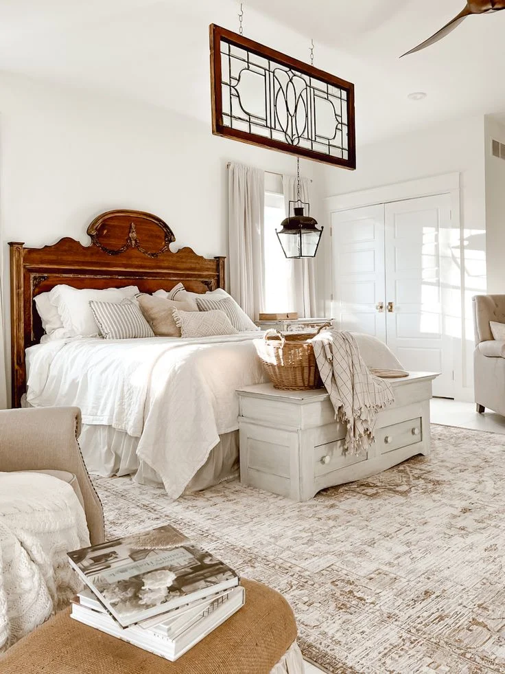 So, choosing one adds charm and will give your farmhouse bedroom a sense of character and authenticity, instantly adding a sense of history and coziness to the space.