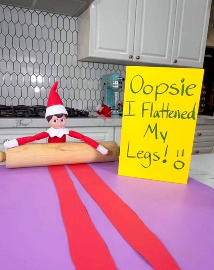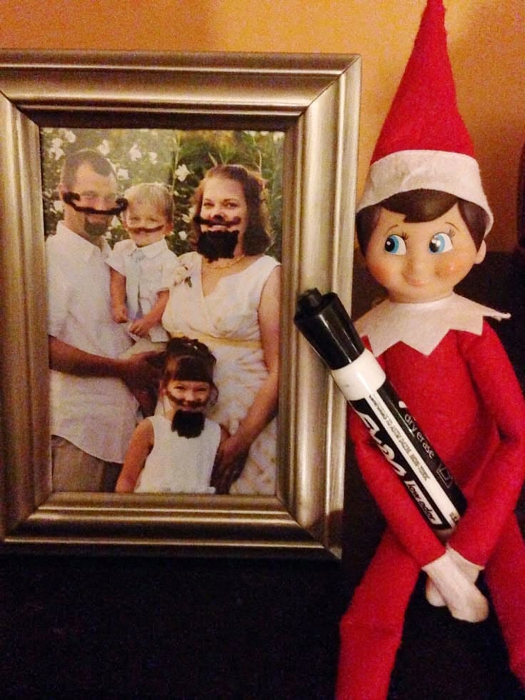 Put the elf nearby holding the marker. It’s naughty in the funniest way, and you can easily wipe it off afterward.