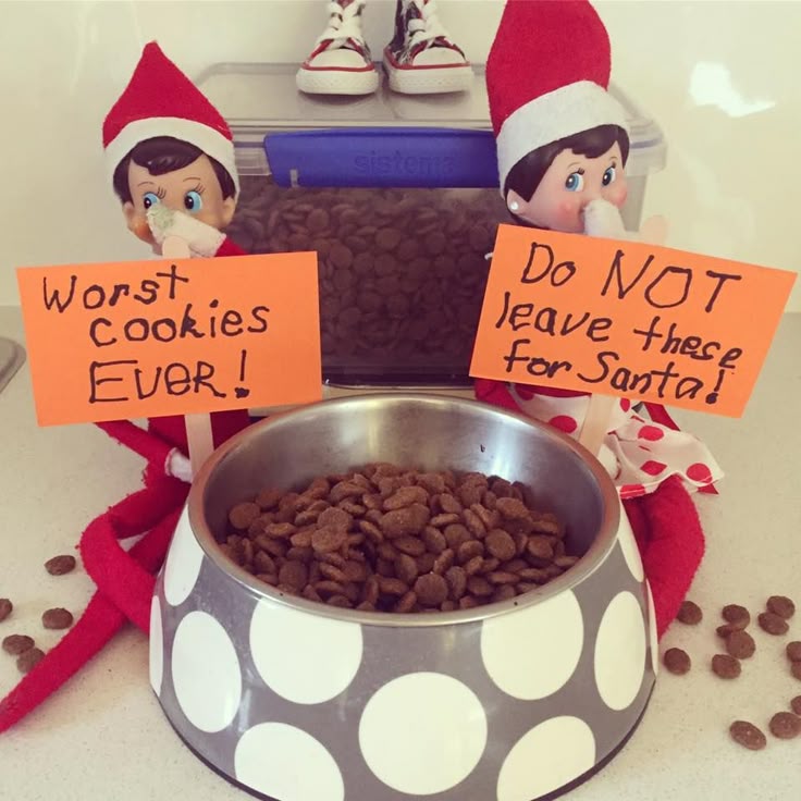 Set your elf next to your dog’s bowl with a disgusted look (or even holding their nose if you can pose them that way).