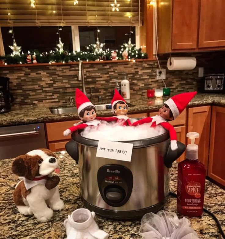 Fill a bowl or a sink with mini marshmallows, and place your elf inside like they’re having the best spa day of their life.