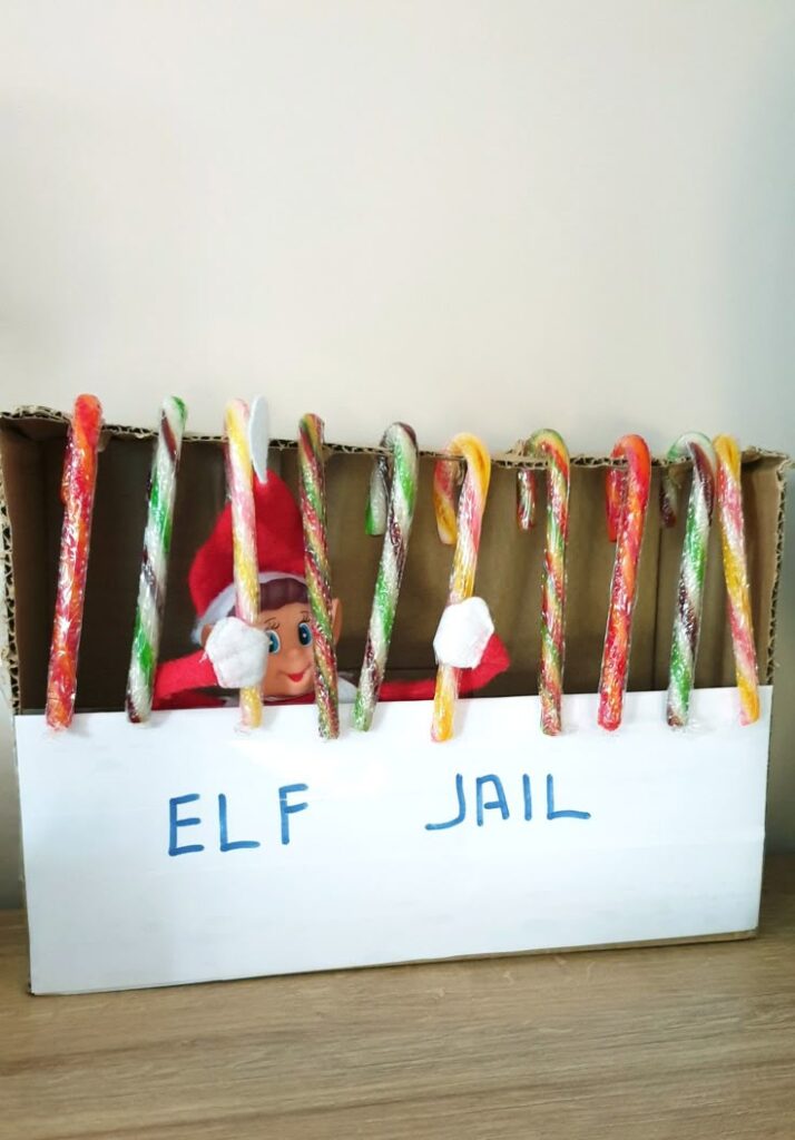Build a tiny “prison” out of candy canes and stick the elf inside with a sign that says “Too many pranks = time out.”