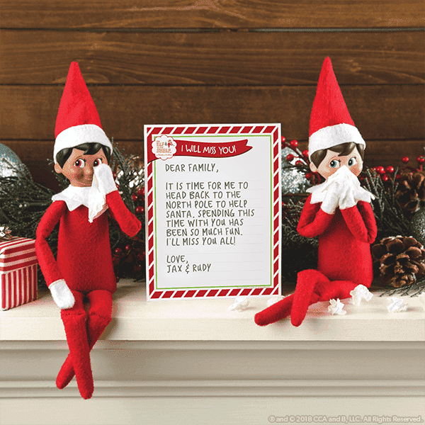 On Christmas Eve, have your elf hold a little note saying, “See you next year! Thanks for the cookies!”