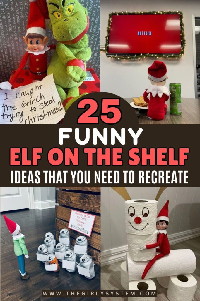 Running out of Elf on the Shelf ideas? Here are 25 hilarious, easy-to-do Elf on the Shelf setups that will make your kids laugh out loud, and keep you entertained, too.