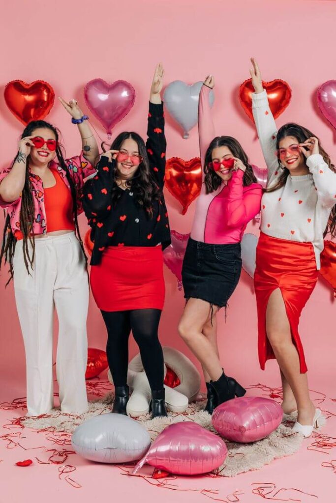Picture heart-shaped decor, charming balloons, and a color scheme of reds and pinks creating a warm and festive atmosphere. The simplicity of this Galentine’s Day idea is what makes it so fantastic and accessible for everyone.