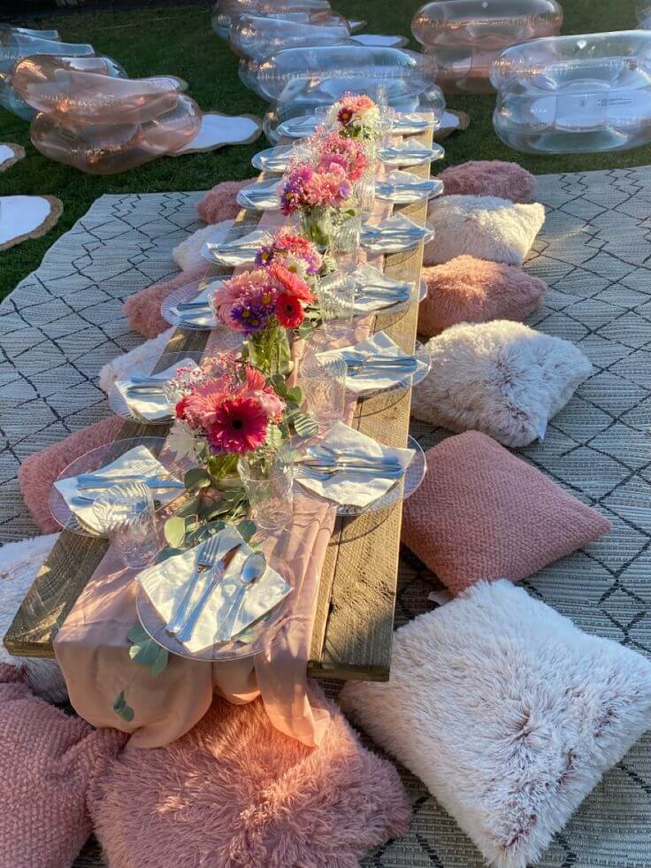 While outdoor picnics don’t need much decor, consider bringing along a few playful touches—maybe some vibrant blankets, comfy cushions, and food, of course.