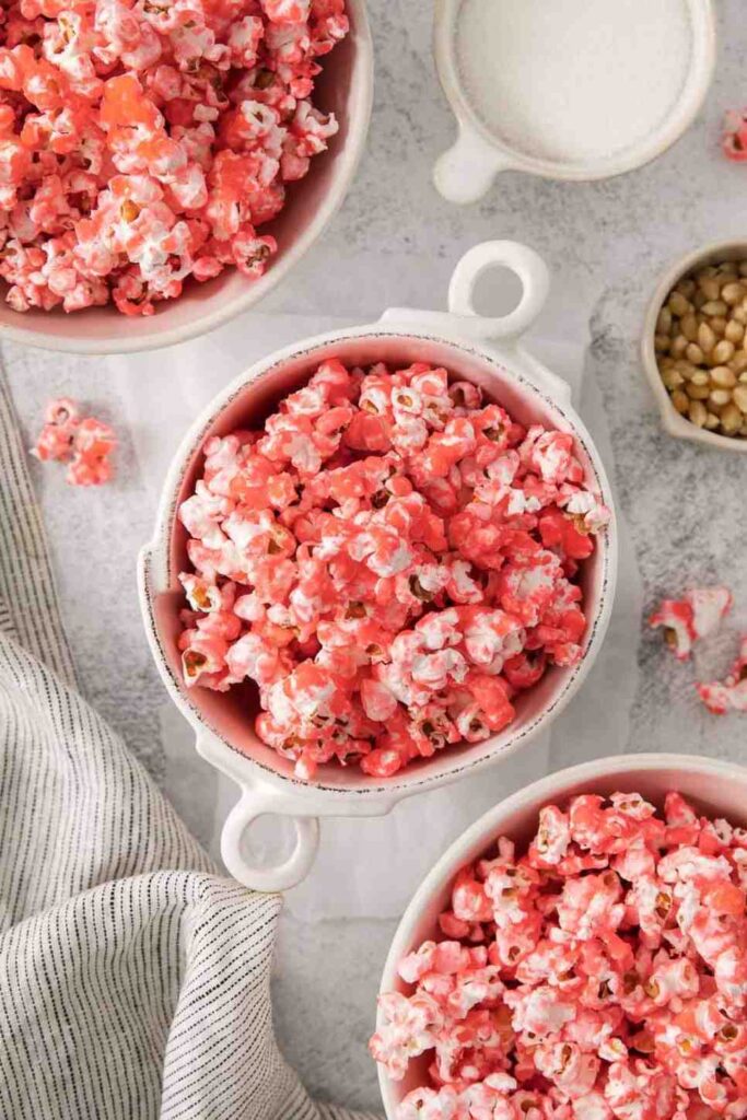 Don’t want to make Galentine’s party food that requires 10+ ingredients? Well this candy popcorn is the right choice for you.