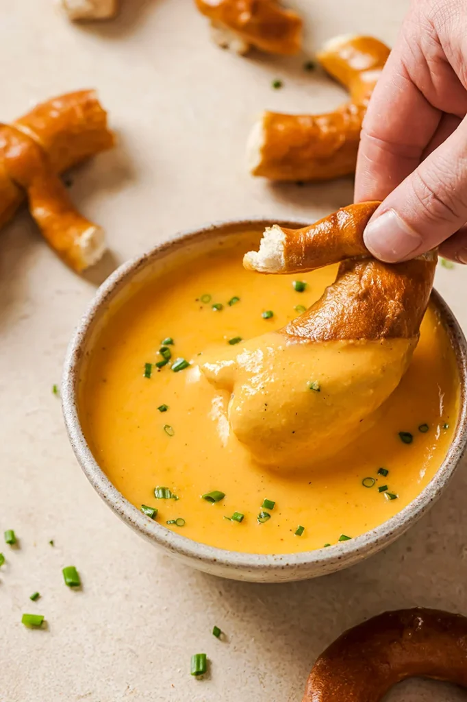 The beer adds depth without overpowering the cheese, and it pairs perfectly with pretzels or thick chips.