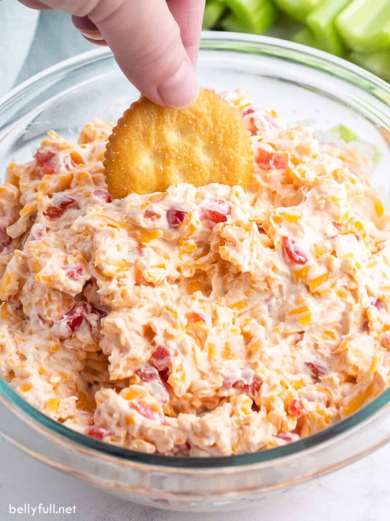 Sharp cheddar, mayo, and pimentos come together into something bold and slightly tangy.