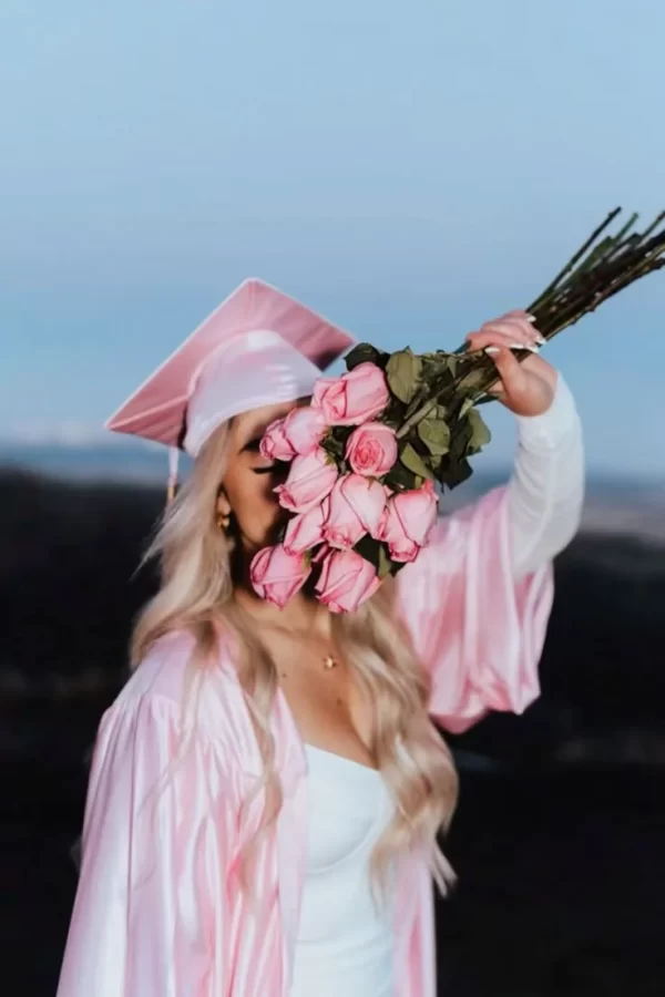 Flower walls feel like something you’d see at a wedding or influencer event, but they work beautifully for graduation photos.