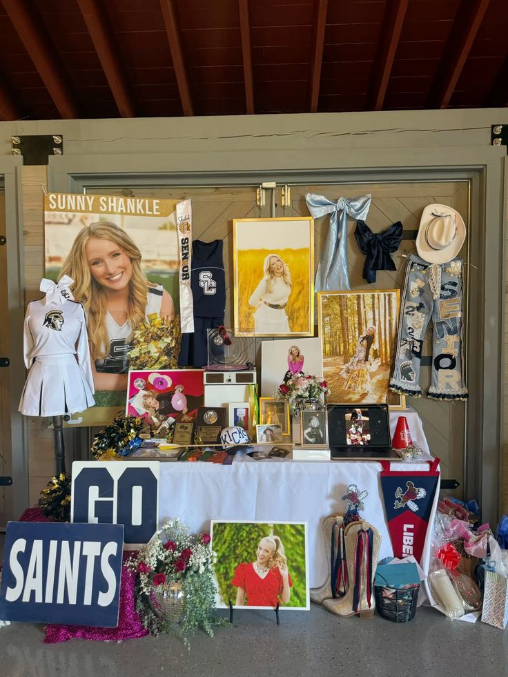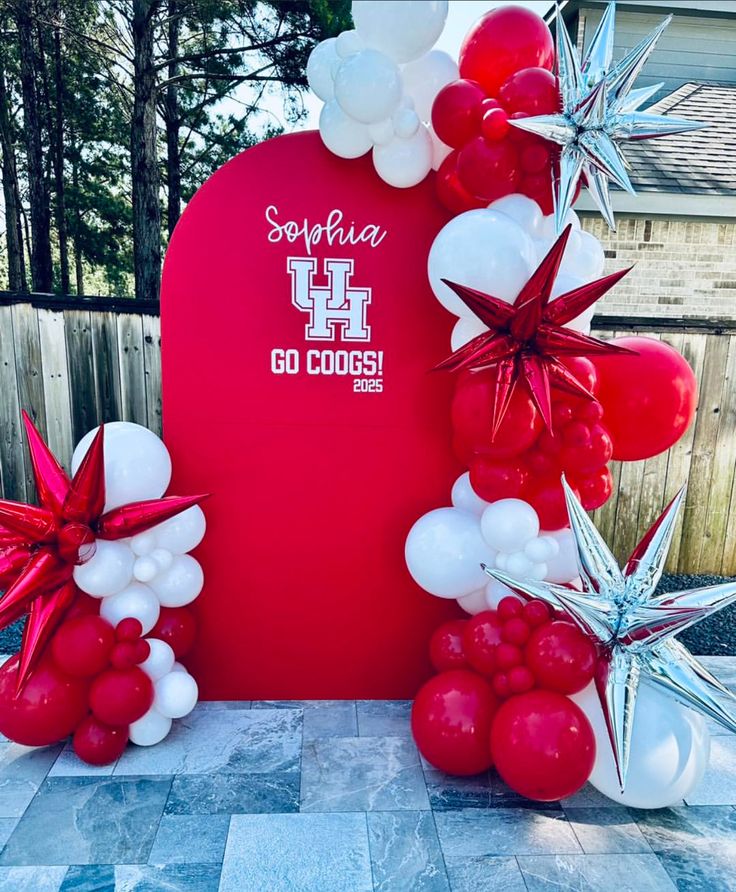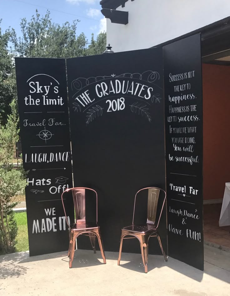 This backdrop tells the graduate’s story without needing a lot of decorations.