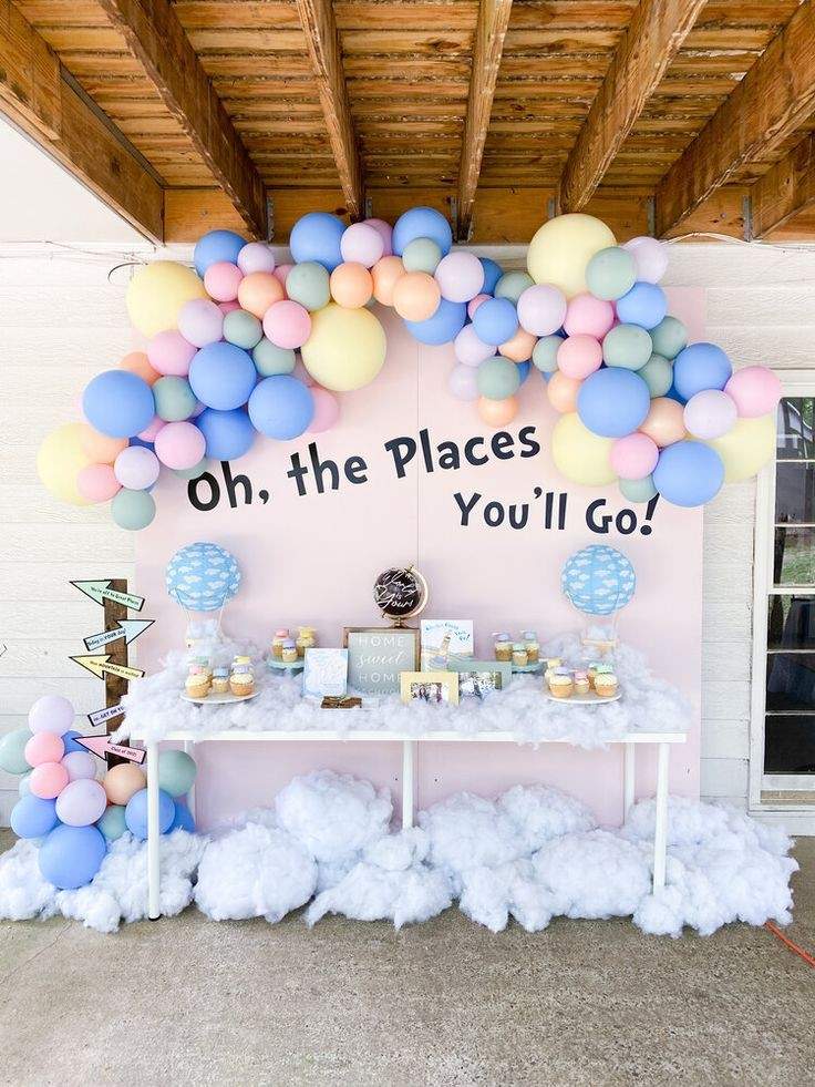 Use maps, suitcase props, and a banner that says “Oh The Places You’ll Go.”