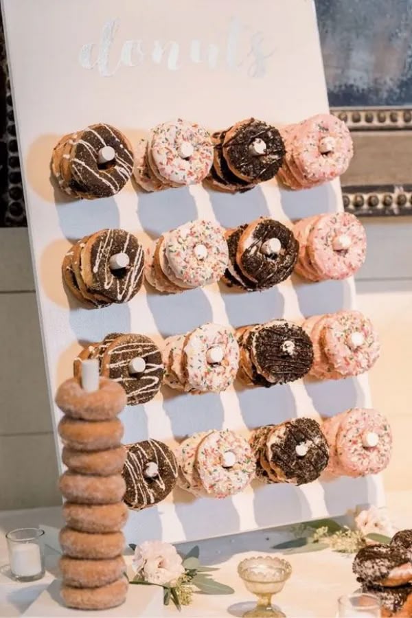Instead of placing your delicious donuts on a regular plate at the dessert table, go for a donut board display.