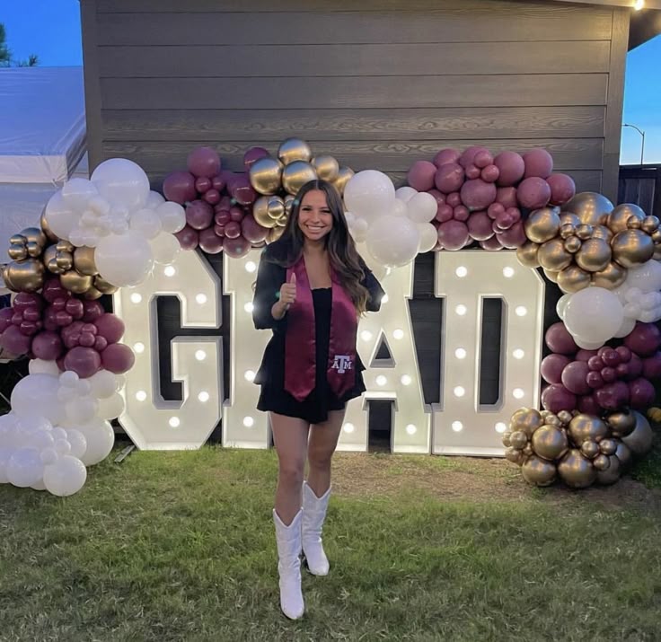 Rent a grad sign decorated with a big balloon arch as a backdrop to take pictures with friends and family or to make it very obvious to your guests which house is the graduation party house!