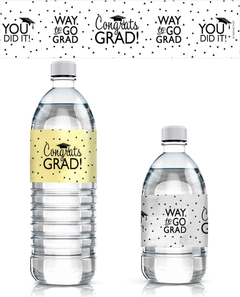 These custom labels add a festive vibe to your drinks and fit perfectly with the whole graduation theme.