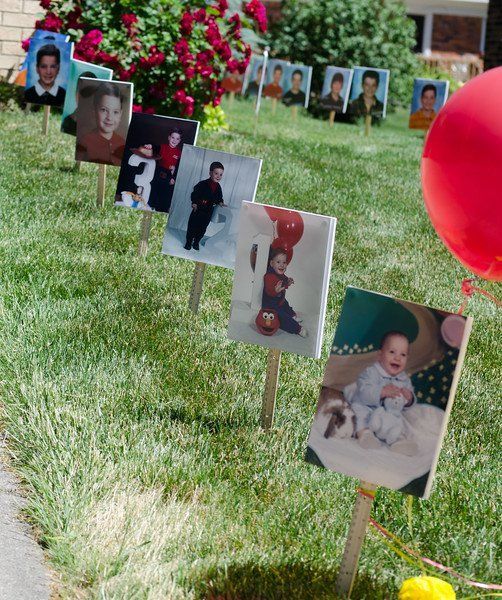 This idea is a classic for a reason! It not only lets guests know where the party is but also displays cute photos of the graduate growing up.