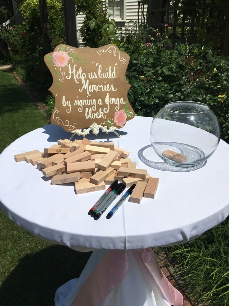 Set up a Jenga game where guests can write their well-wishes or pieces of advice on the Jenga blocks.