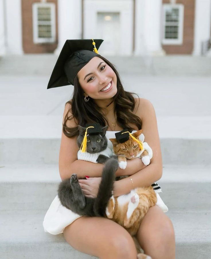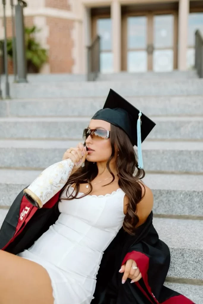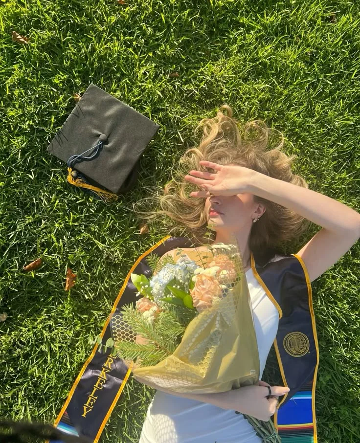 Toss your cap beside you for a sentimental touch, or scatter some blooms for that extra aesthetic vibe!