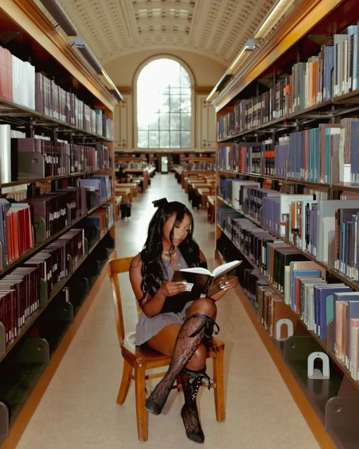 Strike a classic seated pose, grab a book like you’re still “studying,” or step on a stack to level up, literally.