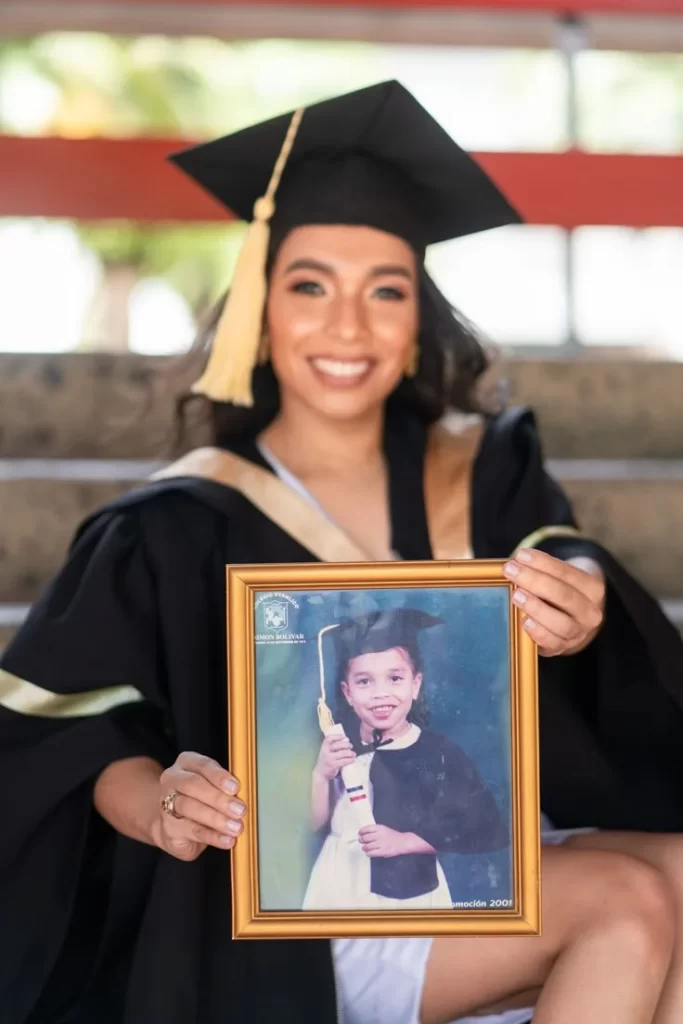 This graduation picture idea is one you’ll definitely want to take, holding a baby picture of yourself alongside your grad photo captures the full circle of your journey.