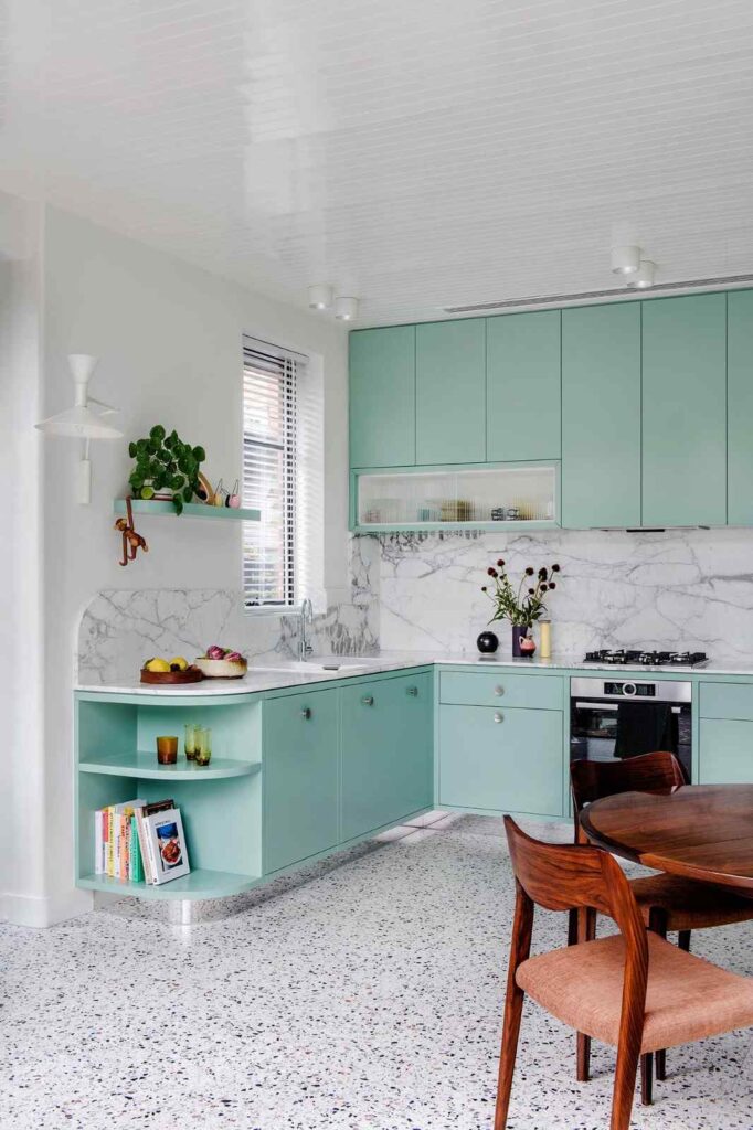 Mint green works best when you want your kitchen to feel lighter and more open.