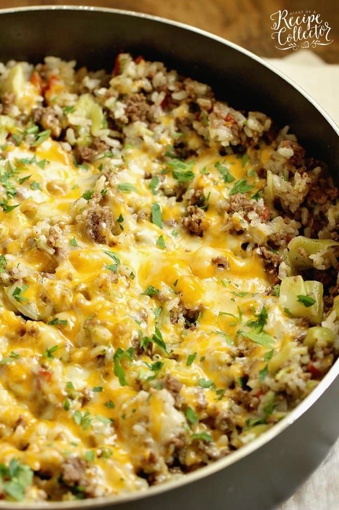 The beef, rice, and spices cook together in one skillet, soaking up all the flavors and saving you from a pile of dishes later.