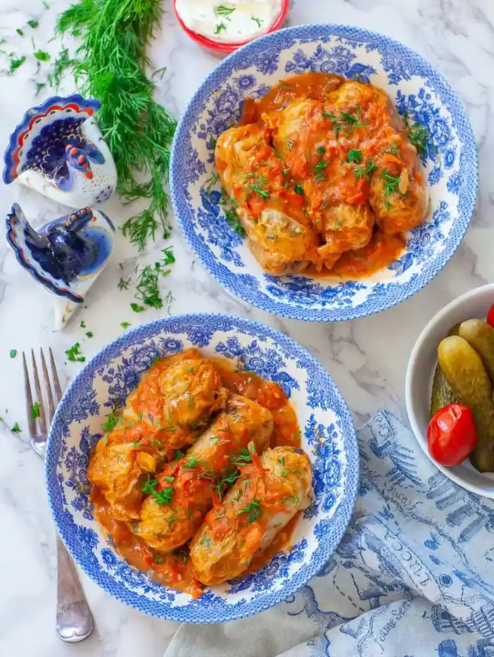 Cabbage leaves wrap around seasoned turkey and rice, then simmer in tomato sauce for a hearty, old-school meal.