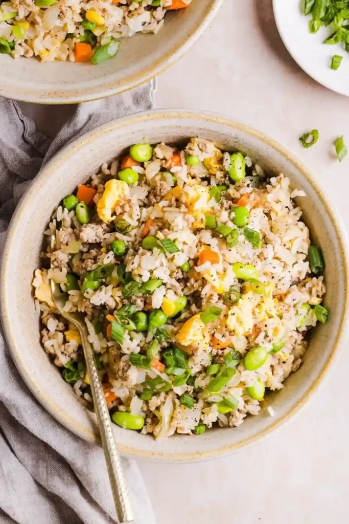 A healthier version of takeout fried rice that uses turkey instead of pork or chicken.