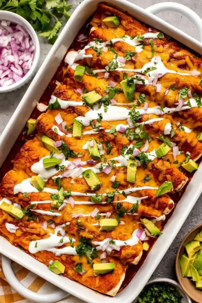 Soft tortillas filled with spicy turkey, black beans, and cheese get baked in enchilada sauce until bubbly.