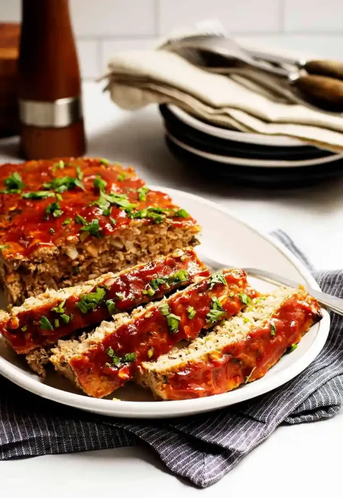 This meatloaf turns out juicy every time with a mix of breadcrumbs, egg, and a sweet glaze on top.