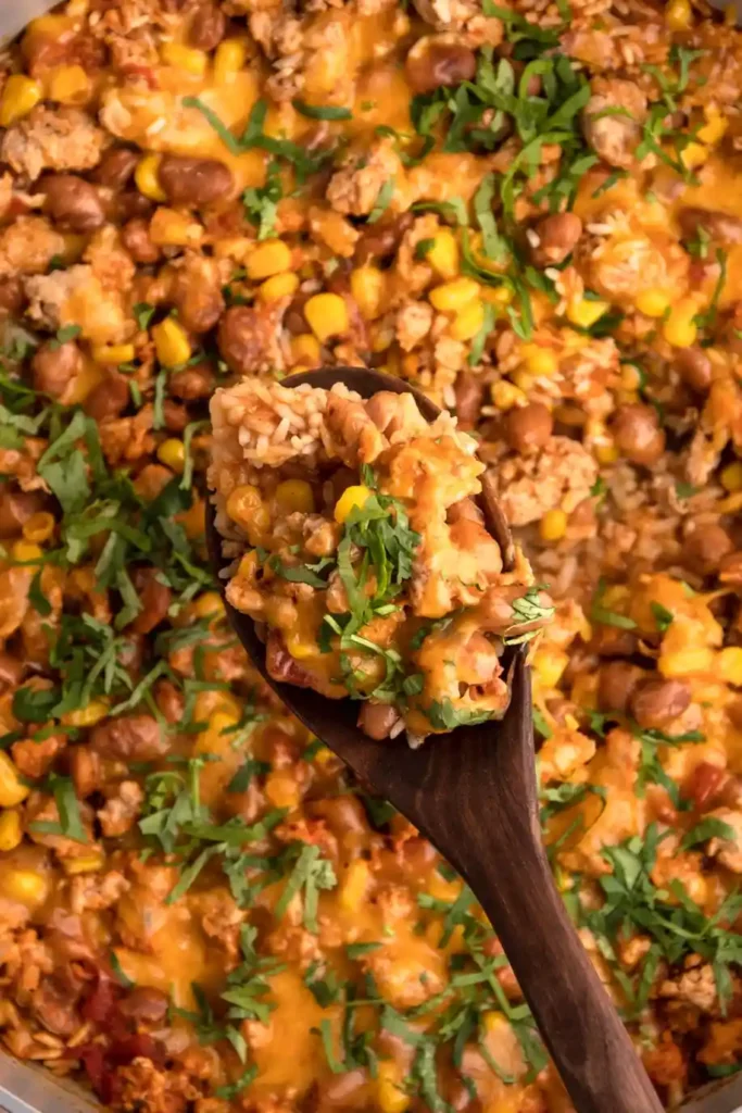 This one-pan dinner brings together rice, turkey, and veggies with an additional salsa that’s cozy and simple.