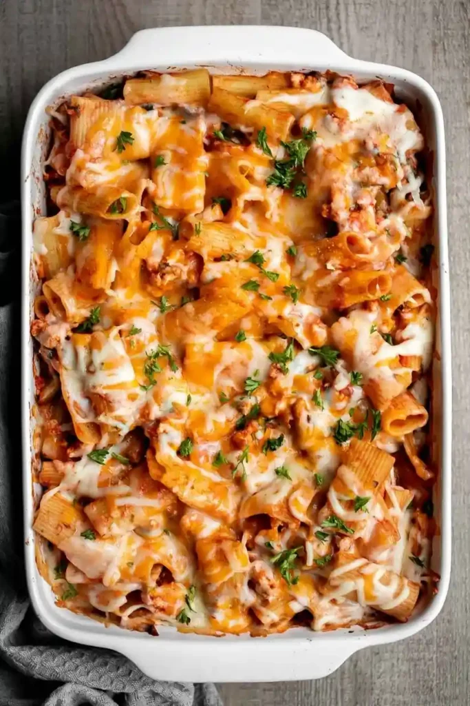 A family favorite that layers pasta, marinara, and turkey with gooey mozzarella.