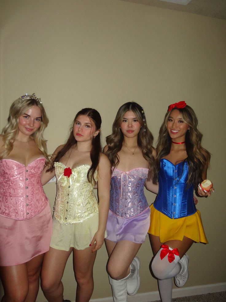 Corset tops, gloves, pearls, and pastel gowns turn this into a romantic group Halloween costume for 2025.