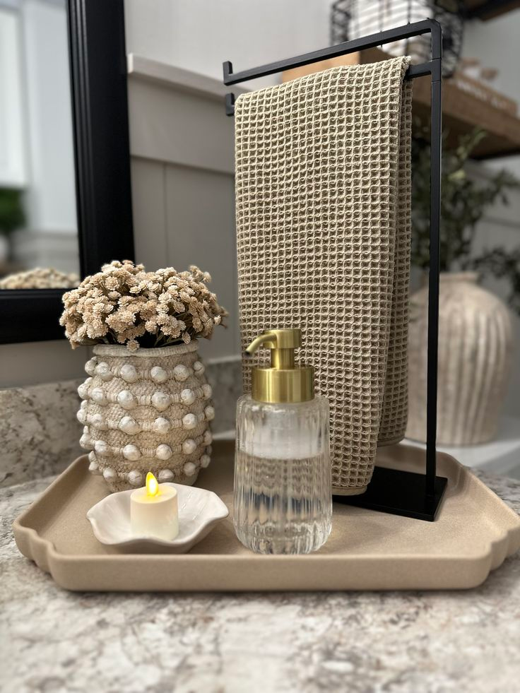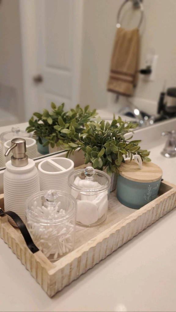 A decorative tray instantly makes a countertop look organized.