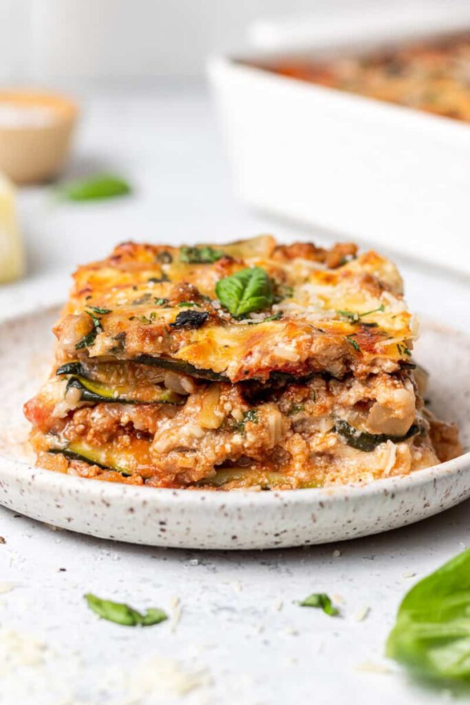 The zucchini replaces the pasta but still gives you those layers and textures you expect.