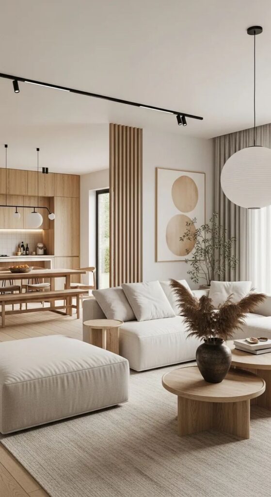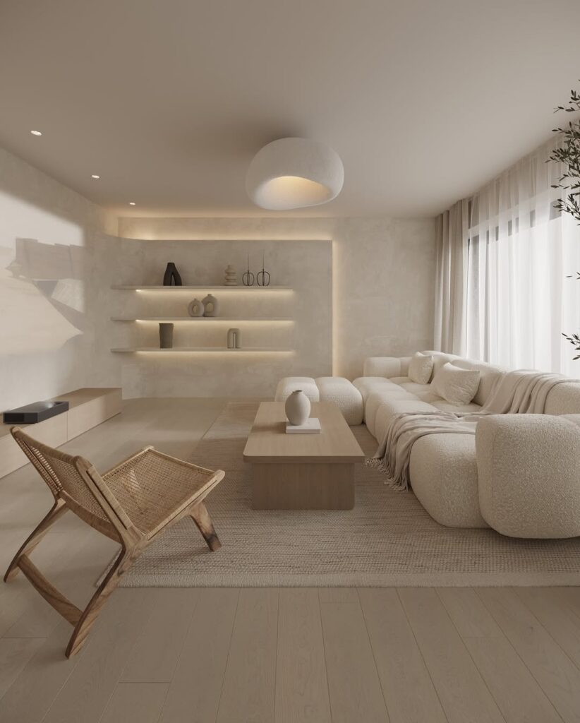 A Japandi living room works best when the foundation feels warm, not clinical.