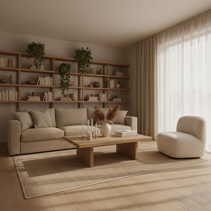 Furniture with gentle curves can soften a Japandi living room without breaking the minimalist feel.