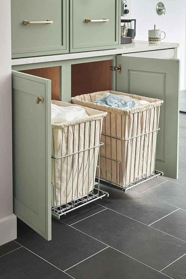 Adding pull-out hampers to your cabinets or countertops can be a smart way to manage your laundry.