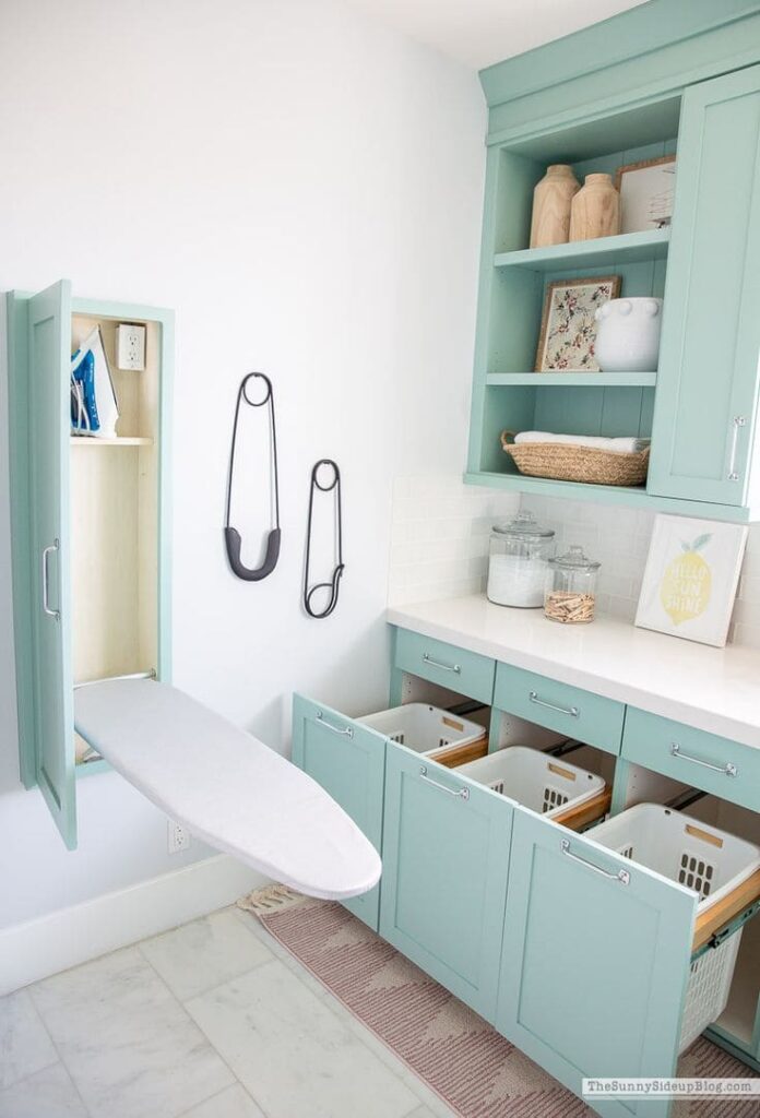 A fold-down ironing board can make a significant difference in laundry rooms, especially smaller ones.
