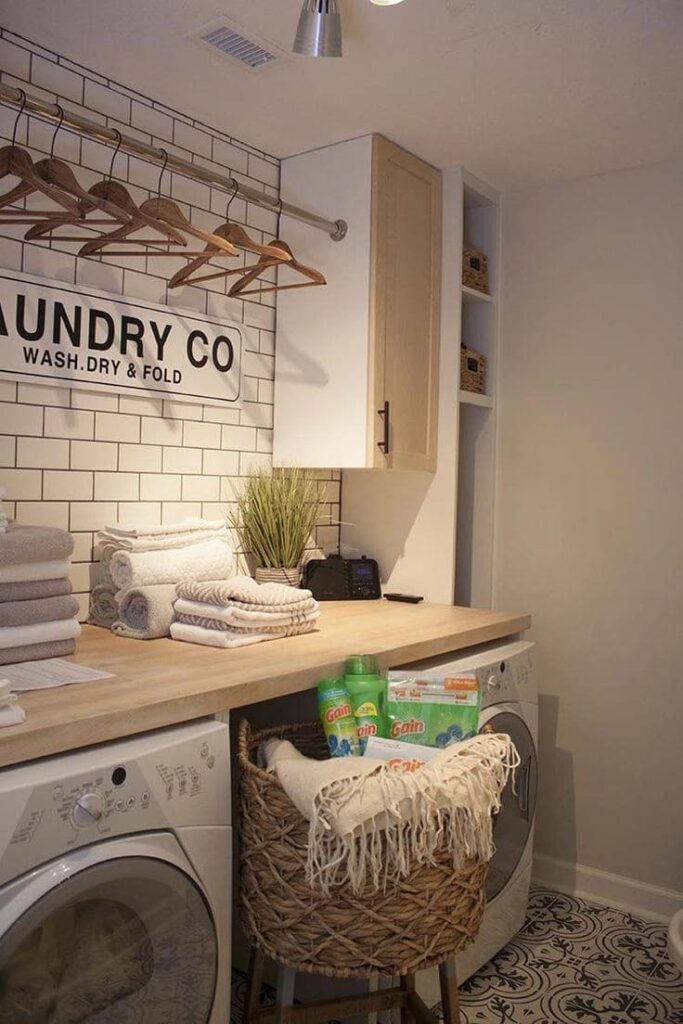 Select a rug or runner that brings warmth and comfort to your laundry room. It’s chic, modern, and most importantly, an effortless idea.