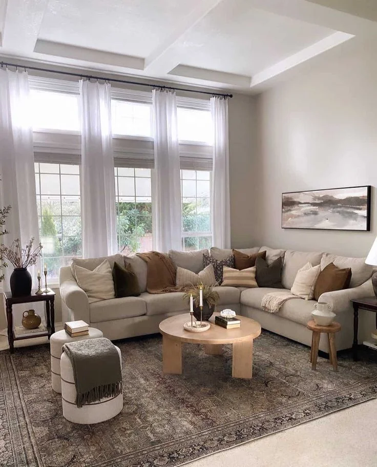 Choose furniture and decor that make you feel at home, like big, comfy sofas, soft armchairs, and cozy throw blankets.