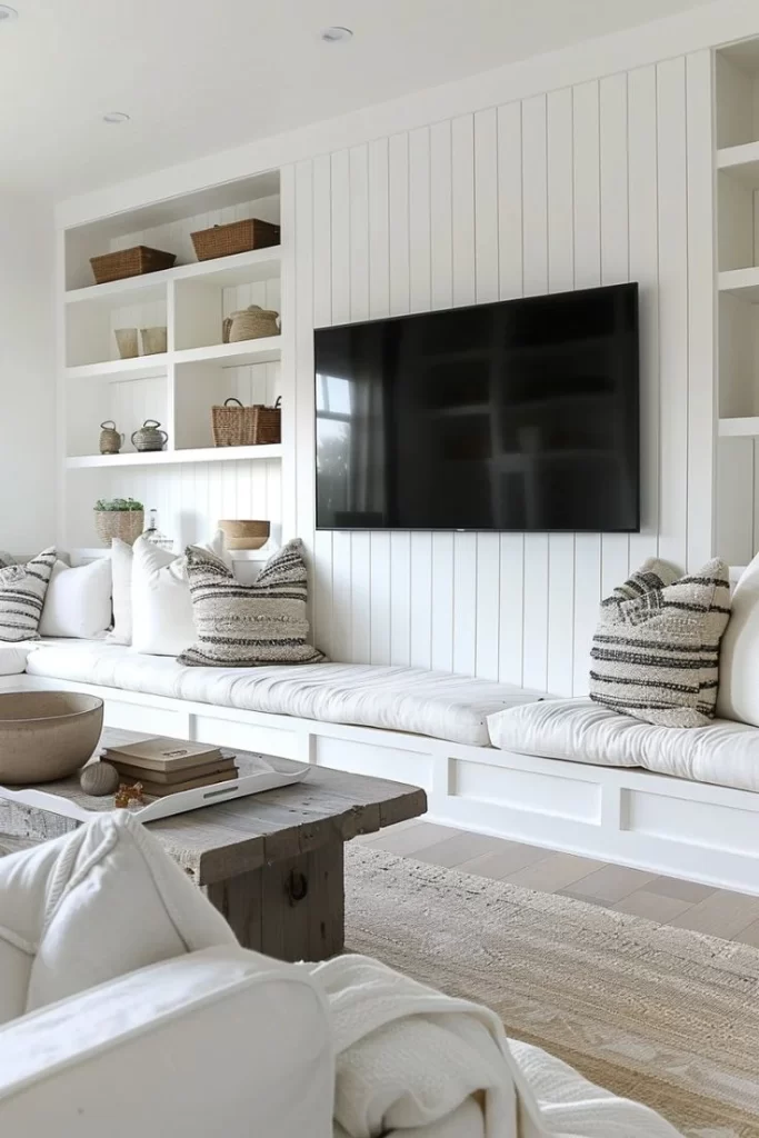Shiplap walls are a key part of farmhouse decor and can make your living room look more interesting.