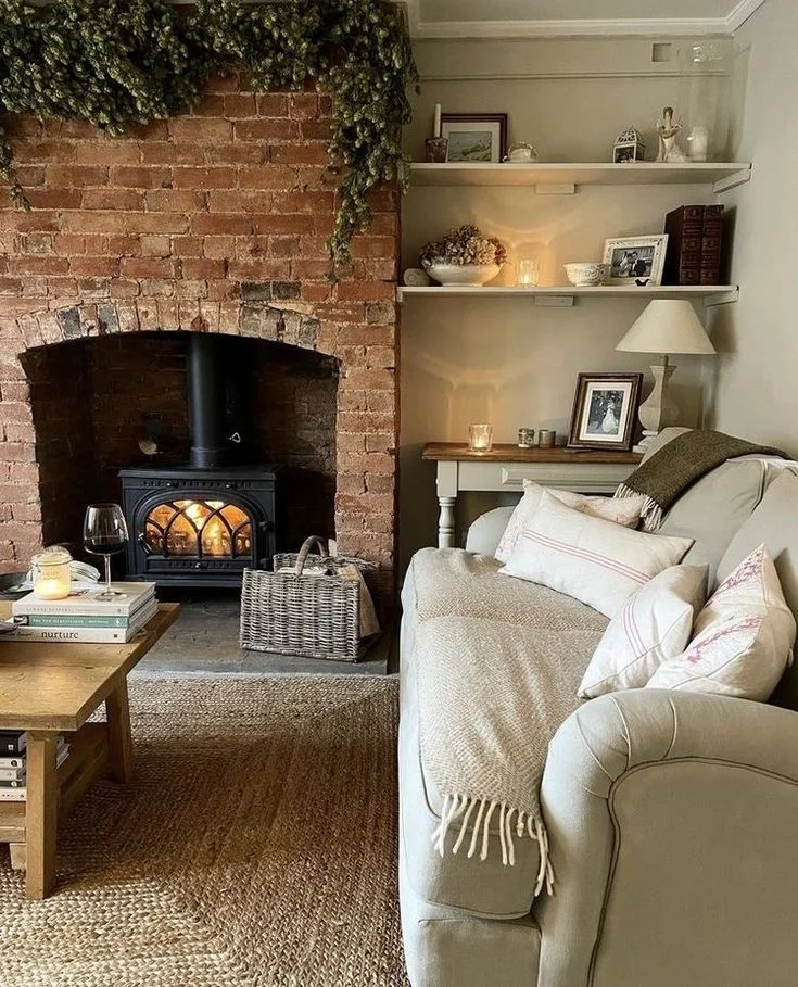 To enhance its charm, add a wooden mantel for warmth and a rustic touch.
