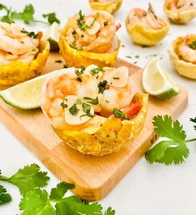 The garlic shrimp brings a punch of flavor, while the crispy cup keeps everything neat.