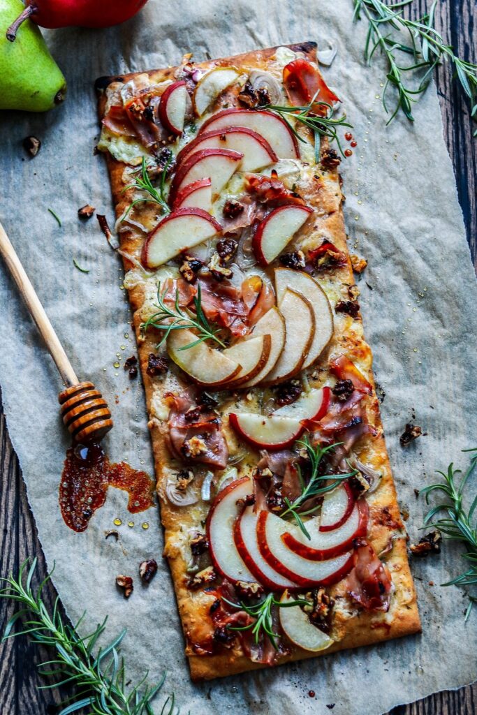 Flatbreads are lifesavers on NYE. This version blends melty brie with sweet pears and crunchy walnuts, creating an easy and comforting appetizer.
